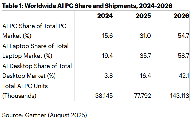- Laut Prognosen des Marktforschungsunternehmens Gartner machen KI-fähige PCs bis zum Jahresende 2025 bereits 31 % des globalen PC-Marktes aus. Das ist ein massiver Sprung!